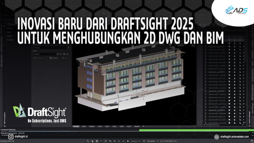 Bagi industri architecture, engineering, and construction (AEC), kehadiran modul BIM pada DraftSight membuka peluang baru dalam mengelola proyek secara lebih efisien dan terintegrasi. Modul tersebut memungkinkan pembuatan berbagai dokumen penting seperti plans, sections, elevations, dan equipment schedules langsung dari data BIM yang valid. Dengan memadukan kekuatan data 3D dan ketepatan gambar 2D, tim proyek dapat berkolaborasi dengan lebih mudah, menghasilkan dokumen yang konsisten, dan mengurangi potensi kesalahan yang biasanya terjadi akibat proses konversi manual.