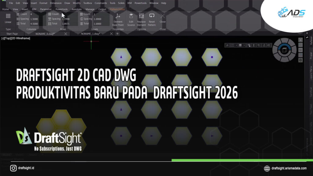 Untuk kebutuhan drafting yang menuntut tampilan visual lebih jelas, DraftSight 2026 menambahkan Gradient & Pattern Ribbons. Hatch Gradient membuat hatch fill lebih informatif dan enak dibaca karena bisa memakai gradient warna. Sementara Pattern Ribbon menyatukan seluruh tools pattern/array dalam satu tab, membuat pembuatan pola dan editing array jadi lebih cepat serta intuitif.